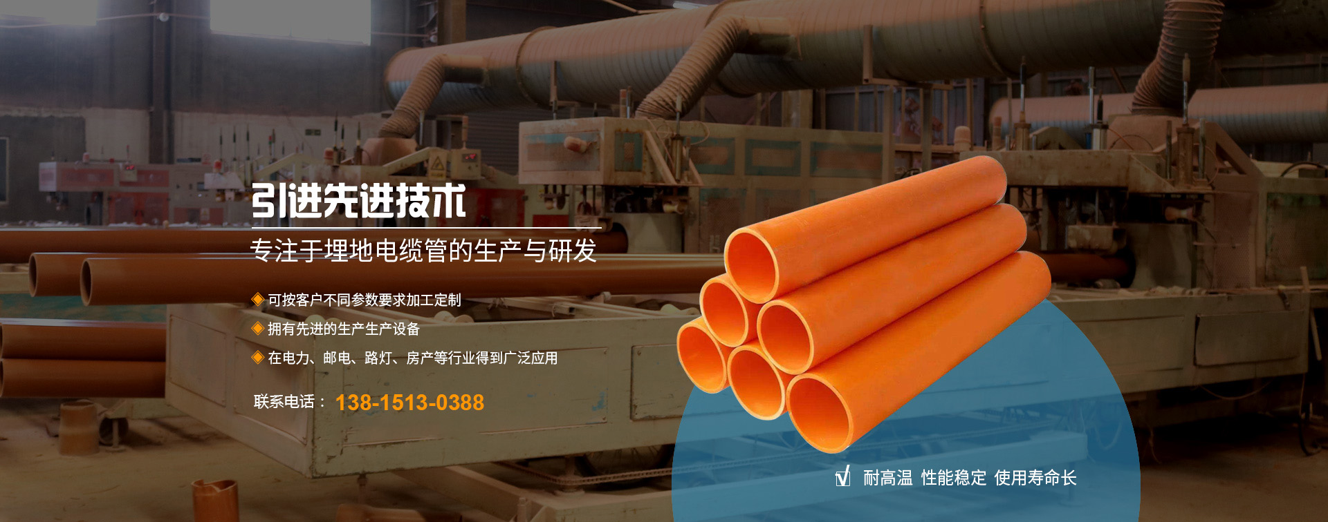 無錫邁力塑業(yè)科技有限公司地處長江三角洲蘇錫常經(jīng)濟(jì)發(fā)達(dá)區(qū),坐落于江南名鎮(zhèn)--華士鎮(zhèn),緊鄰天下第一村“中國華西村”,緊靠沿江高速華西道口,距上海130公里、南京150公里,地理位置優(yōu)越,交通十分便捷。       本廠創(chuàng)辦于2010年,全廠職工總數(shù)為42名,工程師技術(shù)人員5名,擁有國內(nèi)先進(jìn)的錐形雙螺桿、單螺桿擠出生產(chǎn)線9條,是專業(yè)生產(chǎn)PE頂管、PVC-U埋地式普通電力電纜管套、PVC-C高壓電纜套管、MPP電纜套管等管材、管件、BWFRP電纜管拉擠纏繞管。       本廠研制生產(chǎn)的埋地電力通訊電...